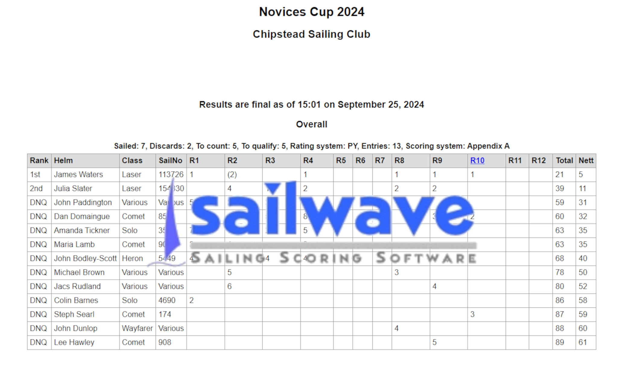 - You are not able to helm in the Novice Cup if you have qualified (sailed the number of races to qualify, usually 9) in any of the summer series last year or previously, as you are deemed to be no longer a novice. This includes Class, Handicap, Junior or Wednesday Evening Racing.